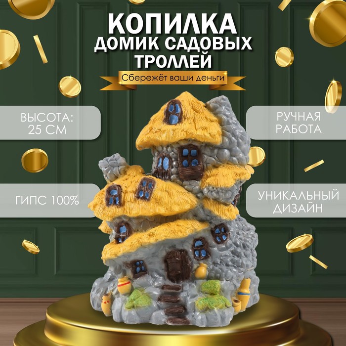 Копилка для денег «Домик садовых троллей», гипс, 25×20×18 см