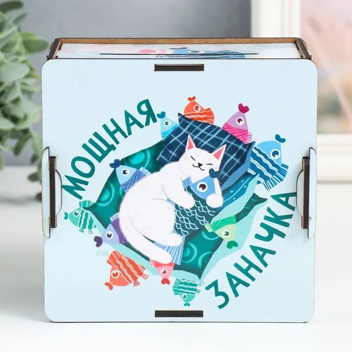 Деревянная копилка для денег «Мощная заначка», 14×14×8 см, набор 10 деталей