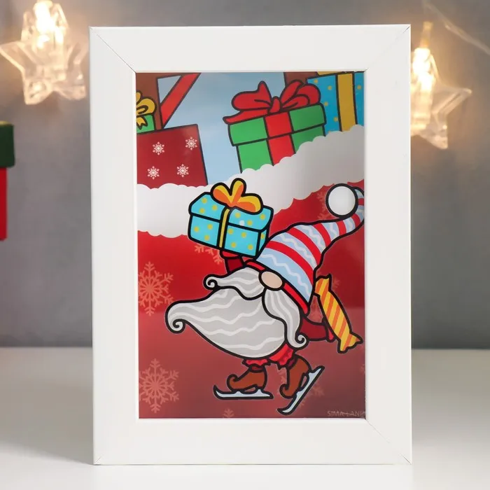 Интерьерная копилка для купюр и монет «Гном с подарками на коньках», пластик, 17×12×3.8 см
