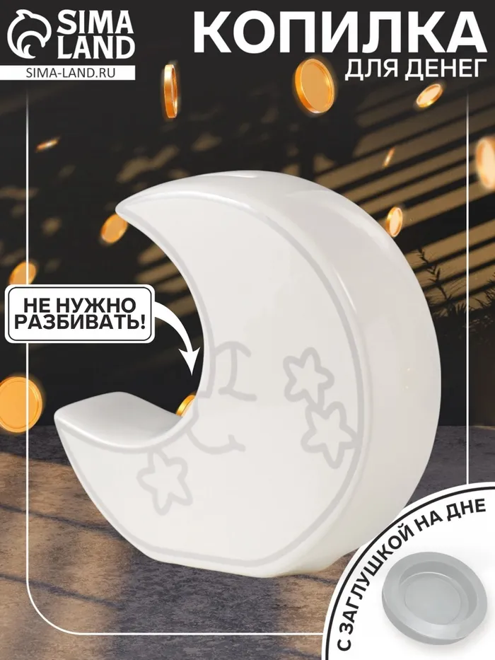 Копилка для денег «Месяц со звёздами», керамика, белый, 20×5.5×19.8 см