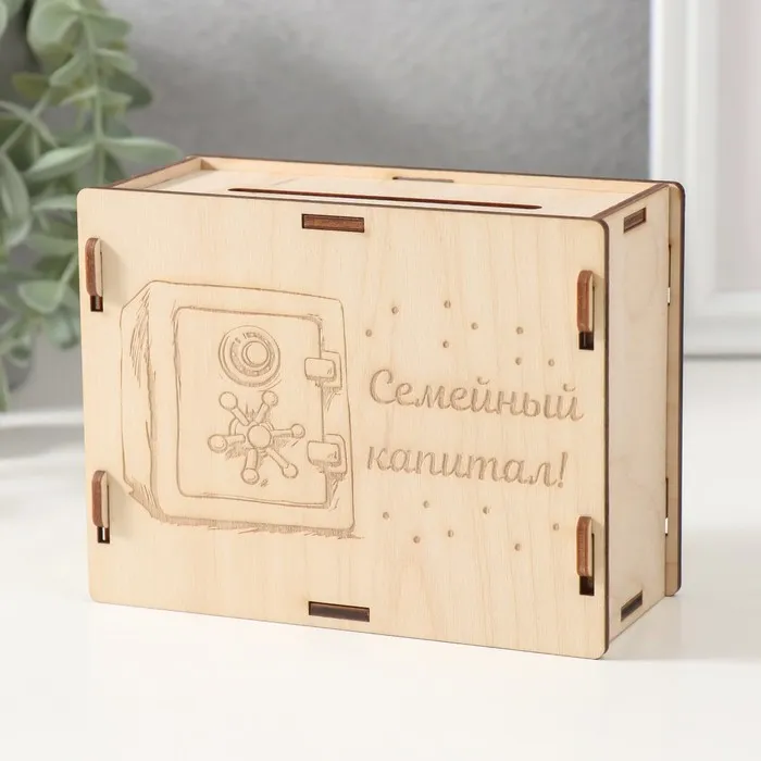 Деревянная копилка для денег «Семейный капитал», заготовка, для купюр, монет, 13×10×5 см, набор 6 деталей