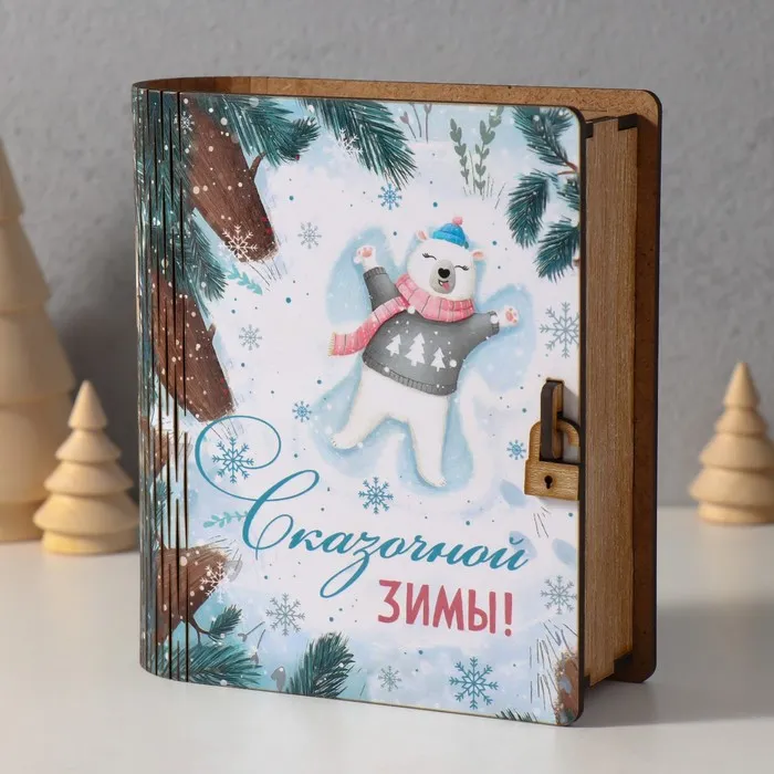 Деревянная копилка-книга для денег «Сказочной зимы», для купюр, монет, 14×12×5 см