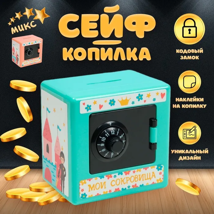 Копилка для денег с кодовым замком «Сейф. Принцессы», пластик, 8.5×6×8.5 см, МИКС