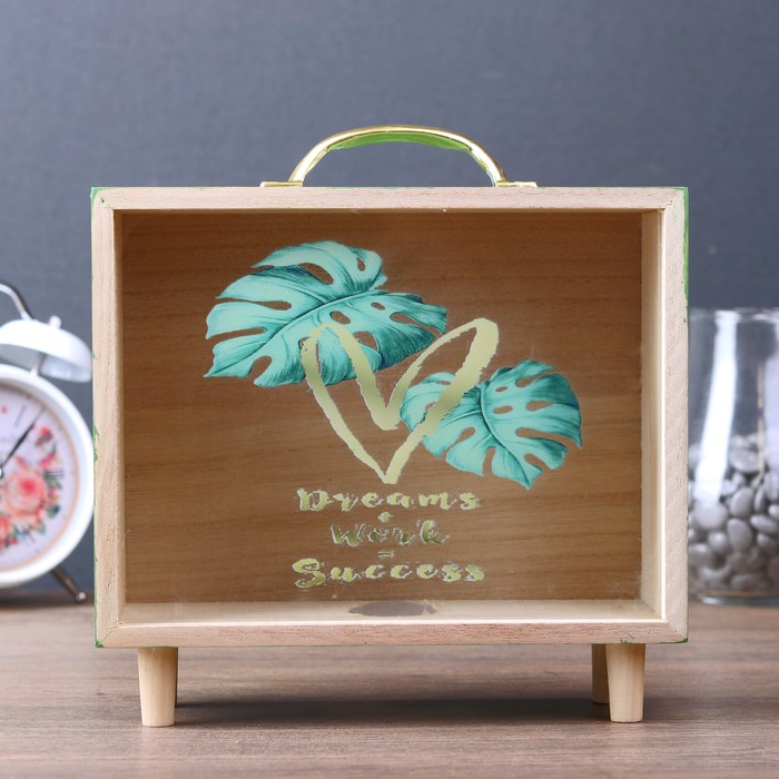 Интерьерная копилка для купюр и монет «Пальмовые листья», дерево, зелёная, 22×21×7.5 см