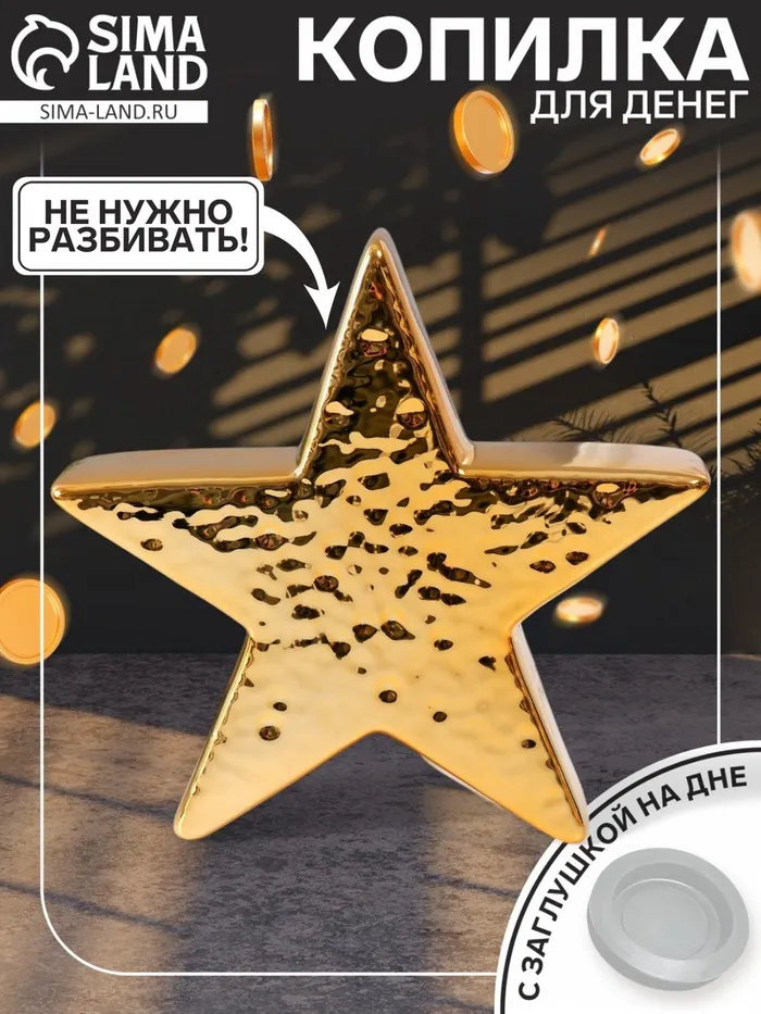 Копилка для денег «Золотая звезда», керамика, 19.5×5.5×19.5 см