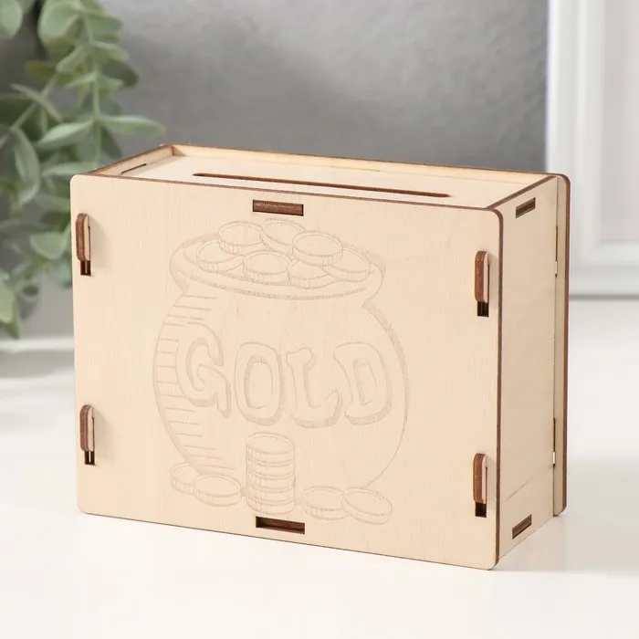 Деревянная копилка для денег «Золото», заготовка, для купюр, монет, 13×10×5 см, набор 6 деталей