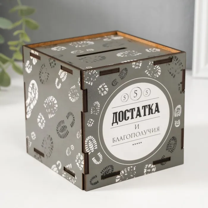 Деревянная копилка для денег «Достатка и благополучия», куб, с надписью, 10×10х10 см