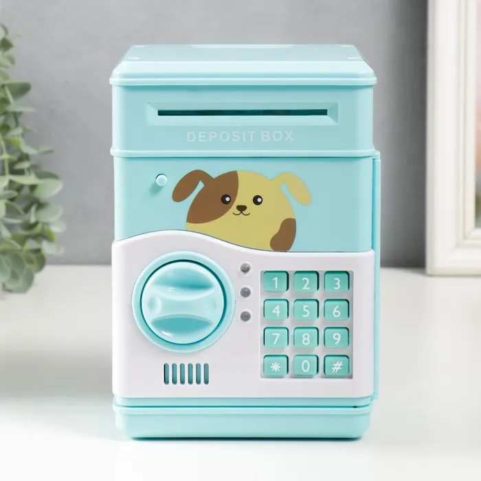 Копилка для денег с кодовым замком «Сейф. Щенок», пластик, звуковая, голубой, 13×12×19 см