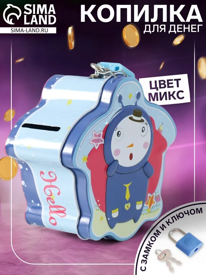 Копилка для денег с замком и ключом «Забавный пришелец», металл, 5.5×9.5×10 см, МИКС