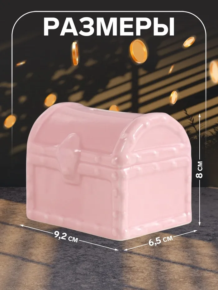 Копилка для денег «Розовый сундучок», керамика, 9.2×6.5×8 см
