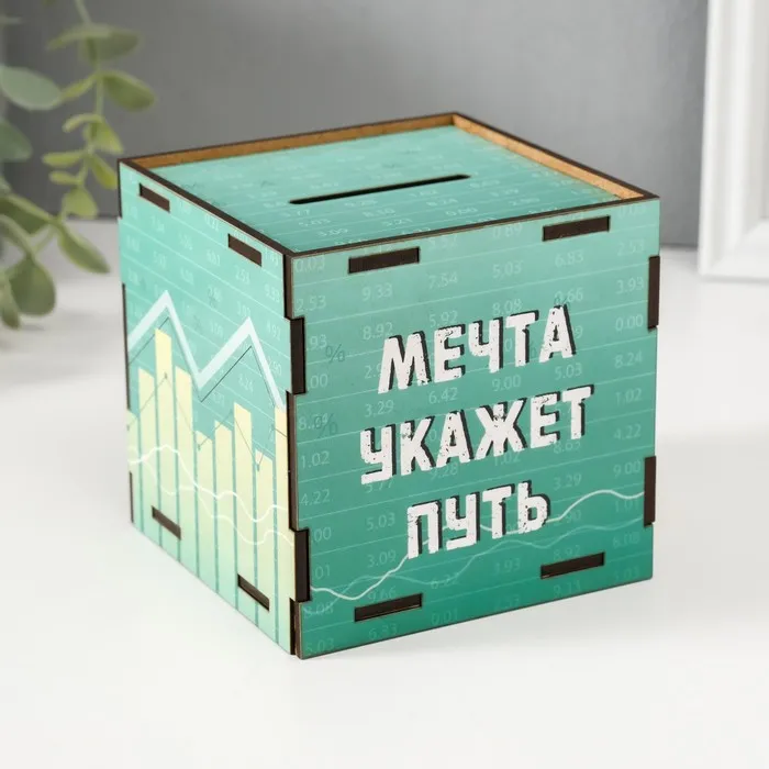 Деревянная копилка для денег «Мечта укажет путь», куб, с надписью, 10×10х10 см