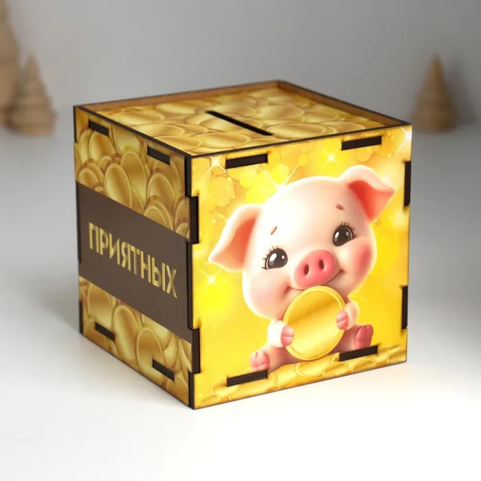Деревянная копилка для денег «Приятных сюрпризов», куб, с надписью, 10×10х10 см