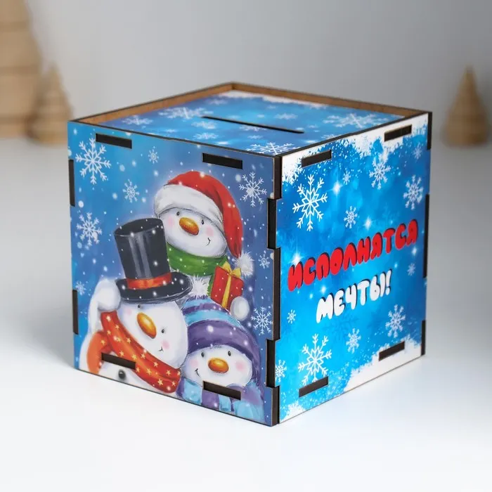 Новогодняя деревянная копилка «Пусть исполнятся мечты», куб, с надписью, 10×10х10 см