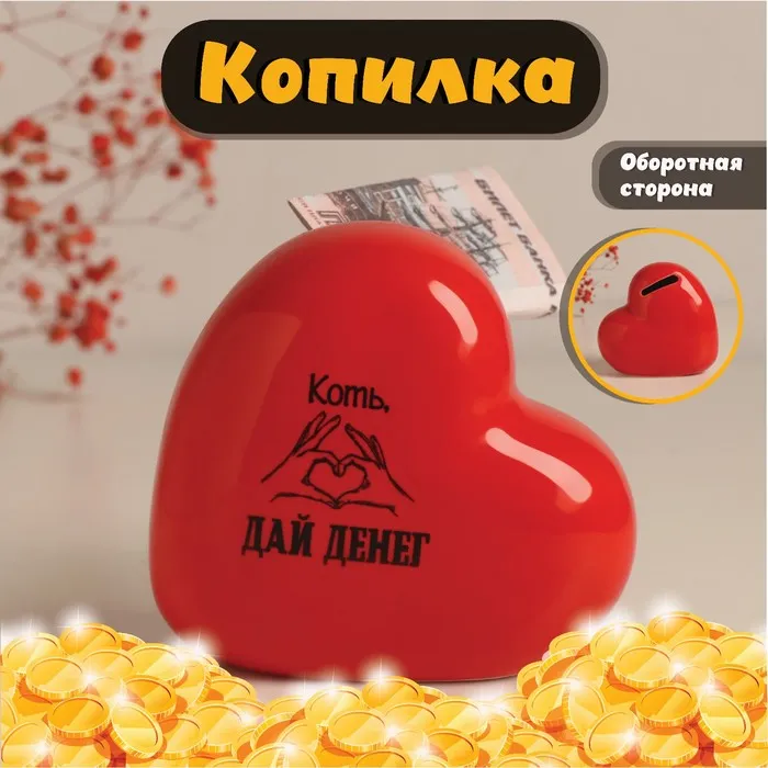 Копилка для денег «Сердце. Коть, дай денег», керамика, красная, 10.5×5×9.5 см