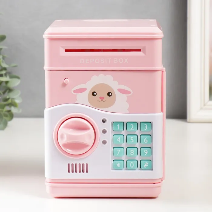 Копилка пластик "Сейф. Барашка" кодовый замок, звук АА розовый 13х12х19 см