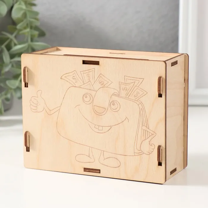 Деревянная копилка для денег «Кошелёк», заготовка, для купюр, монет, 13×10×5 см, набор 6 деталей