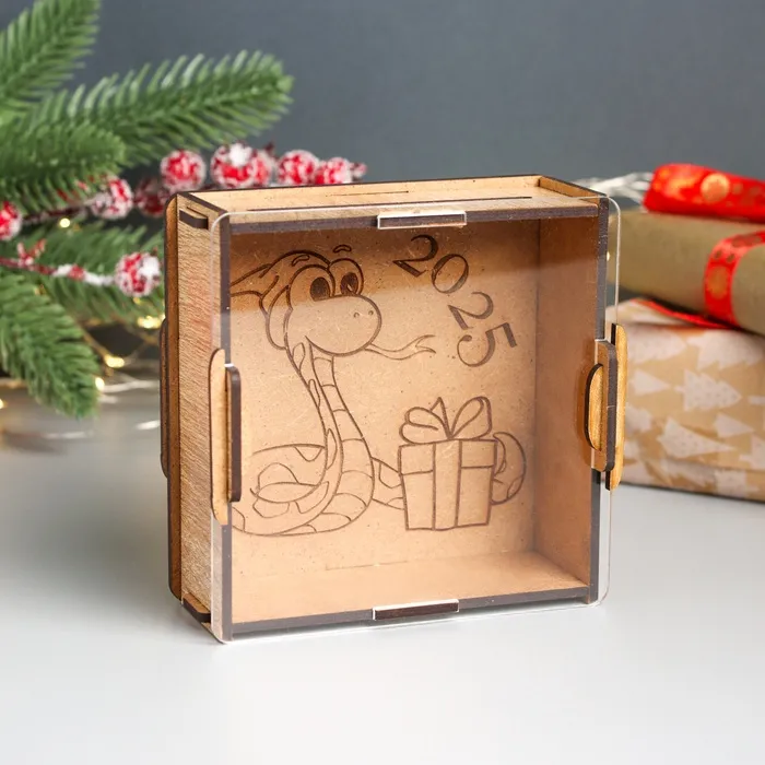 Деревянная копилка для денег с акрилом «Змея. Подарок», заготовка, для купюр, монет, 12×12×4 см