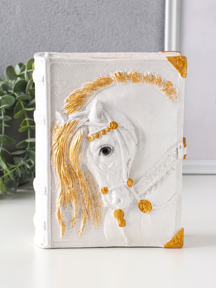 Книга-копилка для денег «Лошадь», гипс, 21×7.5×16.5 см, белый