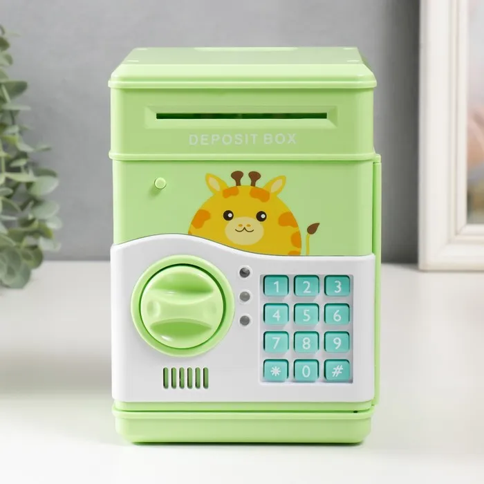 Копилка для денег с кодовым замком «Сейф. Жирафик», звук, АА, зелёный, 13×12×19 см
