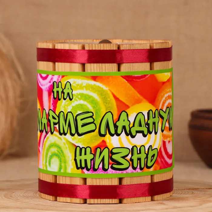 Деревянная бочка-копилка для денег «На мармеладную жизнь», 14×12×12 см