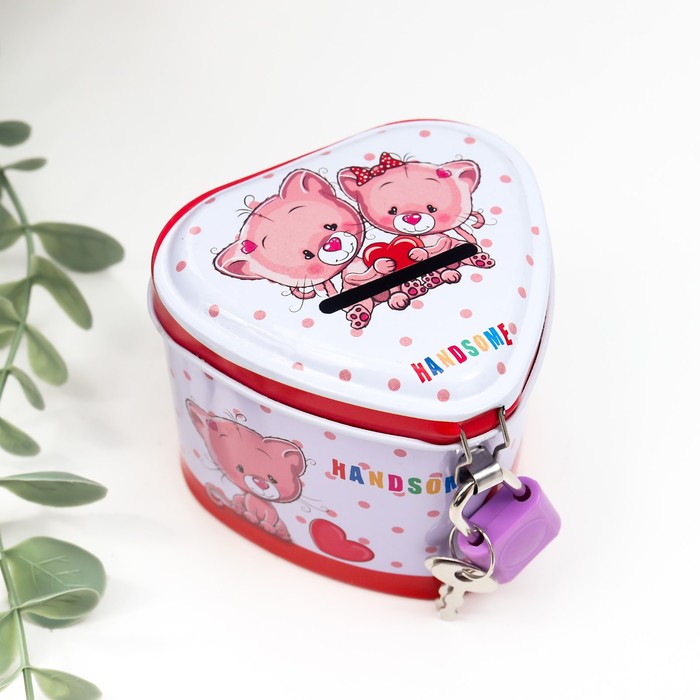 Копилка металл "Зверята" с замком и ключами МИКС 6х7,5х7 см