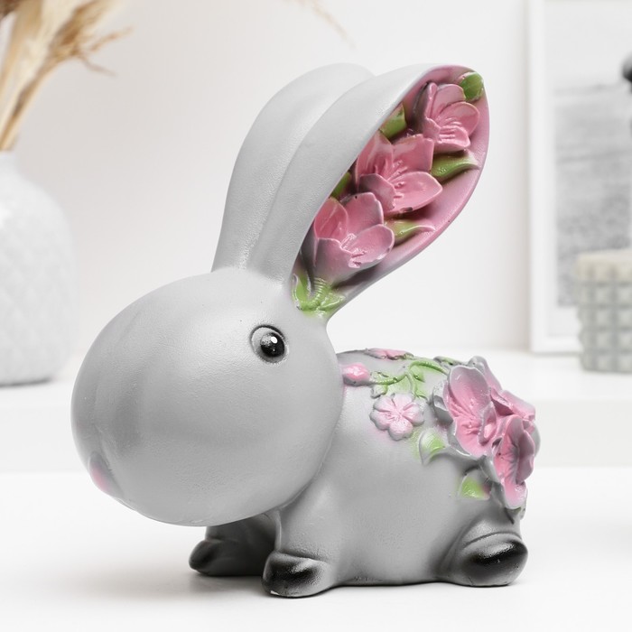 Копилка для денег «Зайка с цветами», гипс, серая, 20×20×10 см