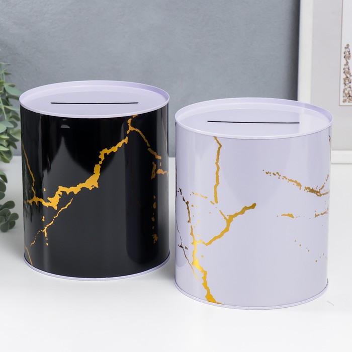 Копилка для денег «Банка. Мрамор с золотыми трещинами», металл, 15.5×13.5×13.5 см, МИКС