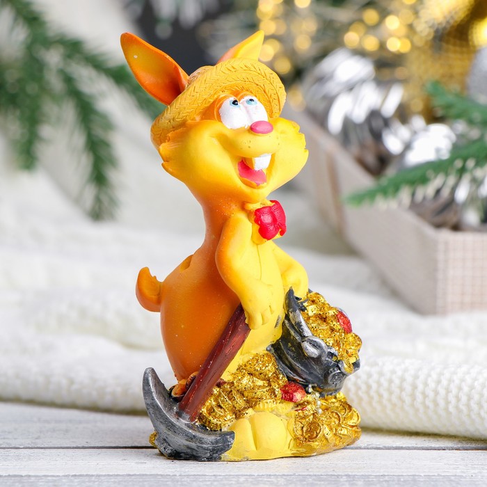 Копилка для денег «Заяц рыжий попрошайка в шляпе», 14 см