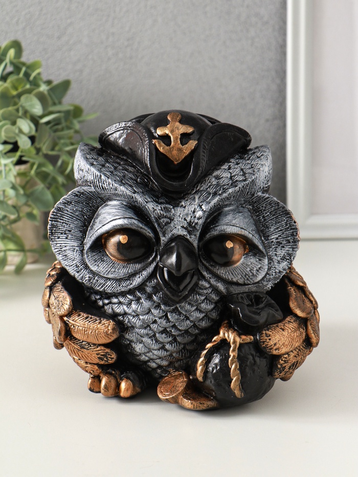 Копилка для денег «Сова в треуголке», гипс, 18×17 см, под бронзу с серебром