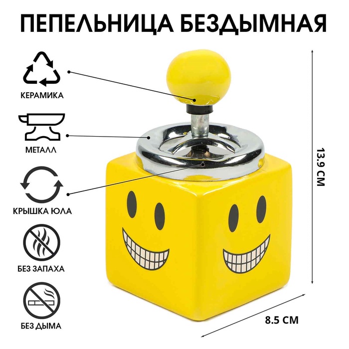 Пепельница для дома бездымная «Смайл», для сигарет и стиков,13.9×8.5 см, микс