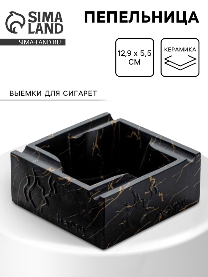 Пепельница «Мрамор», 12.9×5.5 см, керамика, чёрная