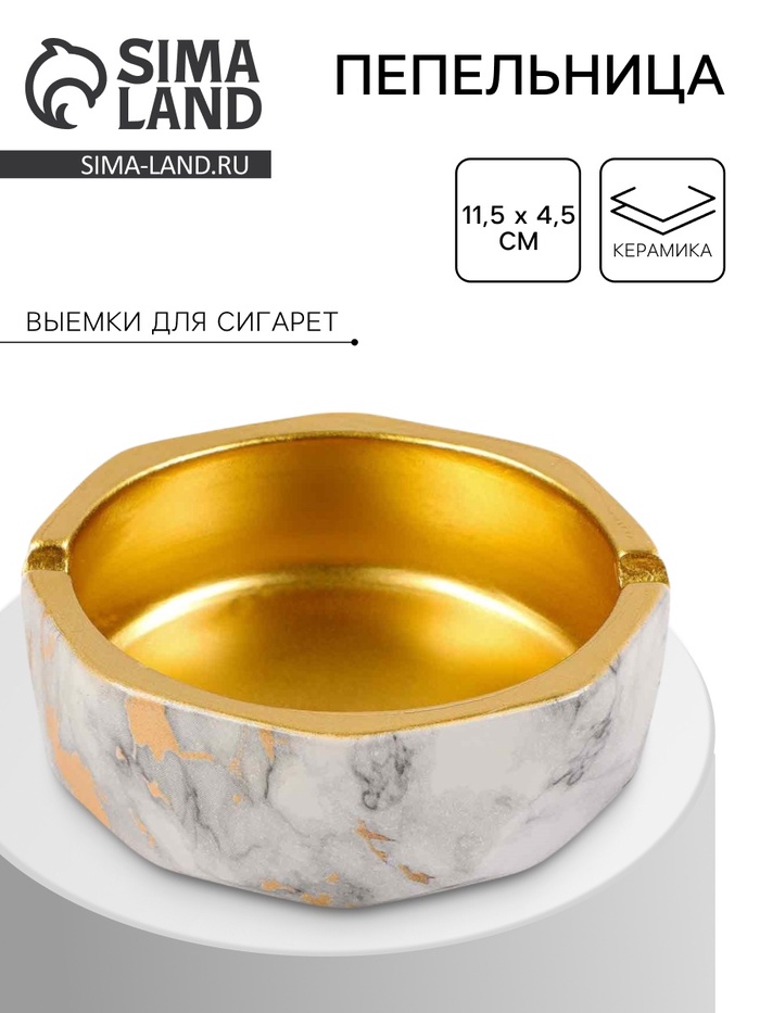 Пепельница для дома «Мрамор», 11.5×4.5 см, керамика