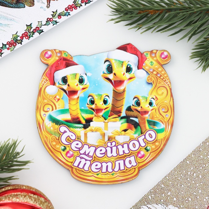 Магнит на холодильник «Подкова. Змея. Семейного тепла», золото
