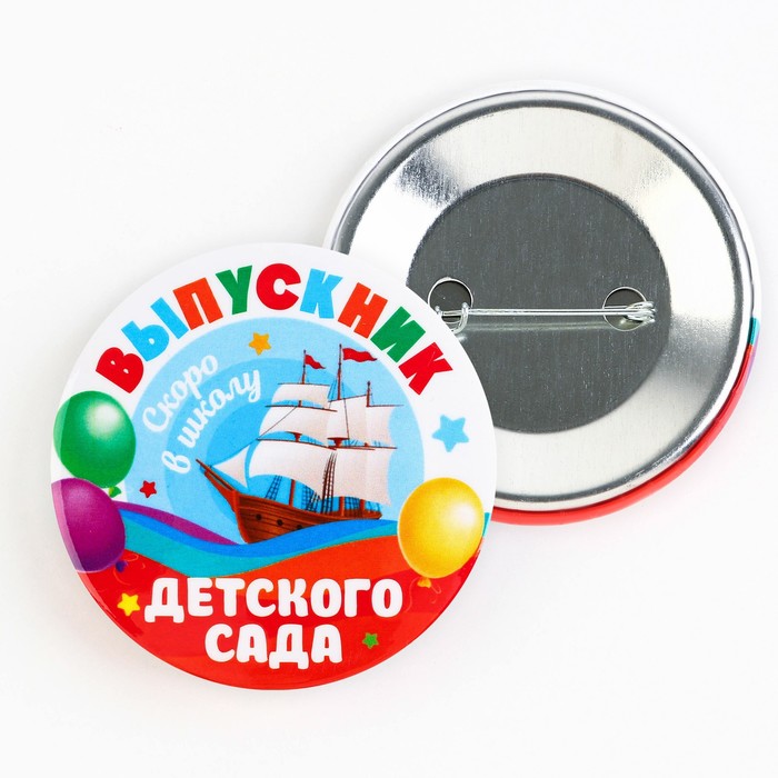 Значок закатной «Выпускник детского сала», корабль, d=56 мм