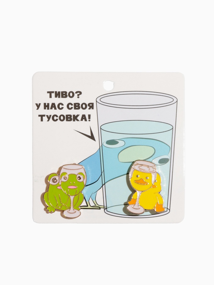 Набор значков (2 шт.) «Зверюшки» с бокалом, цветной