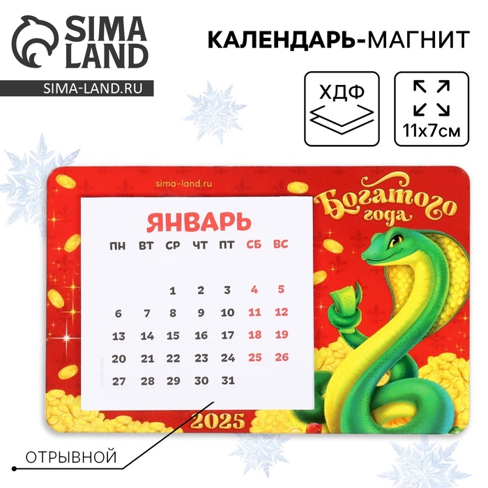 Магнит-календарь «Символ года 2025», 11×7 см, набор 4 шт.