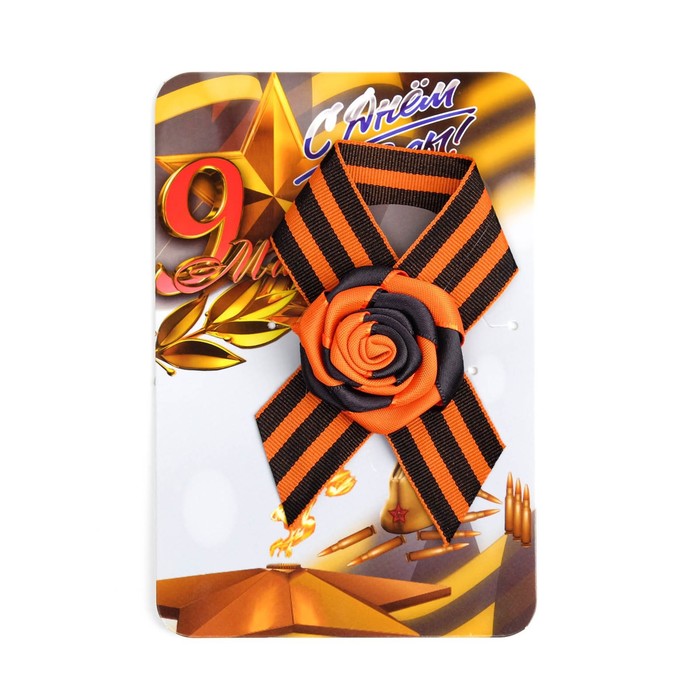 Георгиевская лента на 9 мая «Вечный огонь», с булавкой и цветком