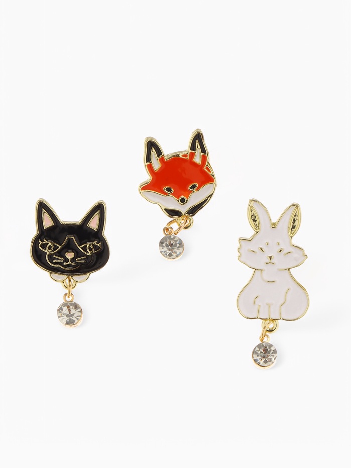 Набор значков (3 шт.) «Зверинец», форма МИКС, цветные в золоте
