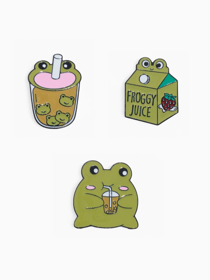 Набор значков (3 шт.) «Лягушачьи напитки», цвет зелёный в чёрном металле