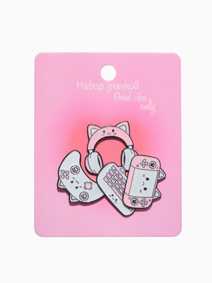 Набор значков (4 шт.) «Кото-гаджеты», цвет бело-розовый в чёрном металле