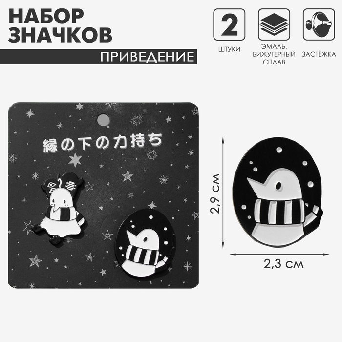 Набор значков (2 шт.) «Привидение» в шарфике, чёрно-белый в чёрном металле
