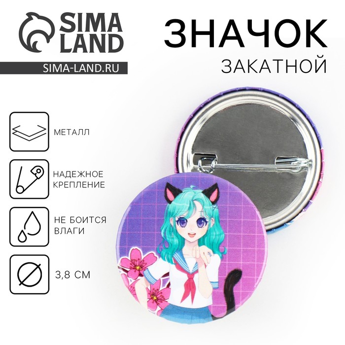 Значок закатной аниме «Девушка с ушками», d=3.8 см