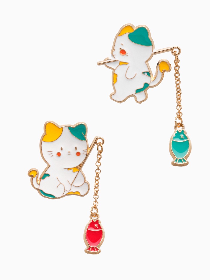 Набор значков (2 шт.) «Япония» котики, цветной в золоте