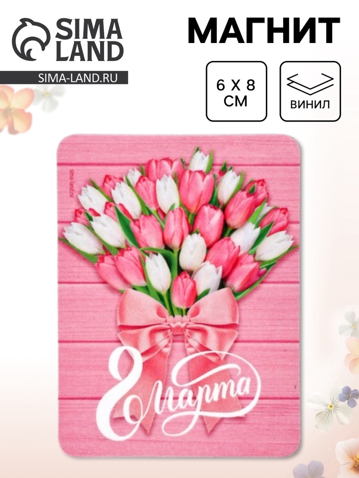 Магнит на холодильник, полимерный «Тюльпаны. 8 марта», 6×8 см
