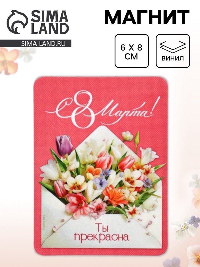 Магнит на холодильник, полимерный «Ты прекрасна! 8 марта», 6×8 см