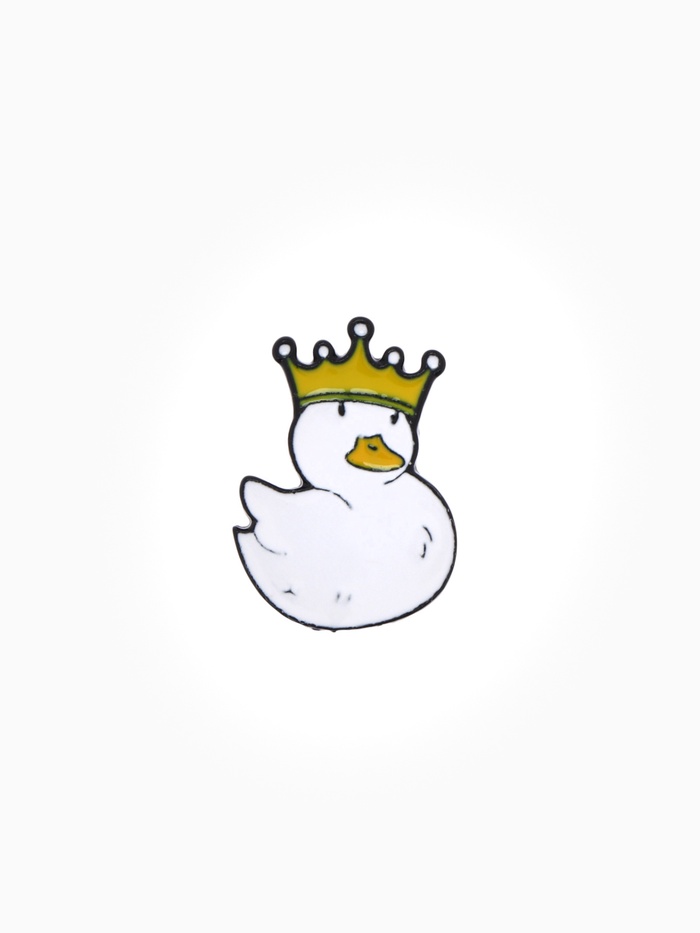Значок «Утка» в короне, цвет жёлто-белый в чёрном металле