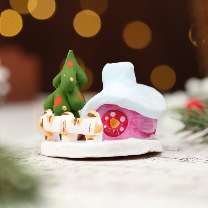 Подсвечник на 1 свечу «Фигурка: Новогодняя избушка», ковровская игрушка, керамика
