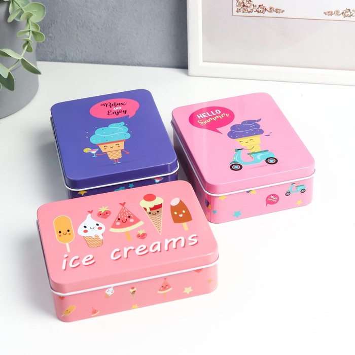 Шкатулка металл прямоугольная "Приключения мороженого" МИКС 12х9х4 см