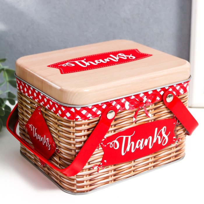 Шкатулка металлическая прямоугольная с ручками «Корзинка красная», для подарка, мелочей, 10.6×12.7×15.3 см