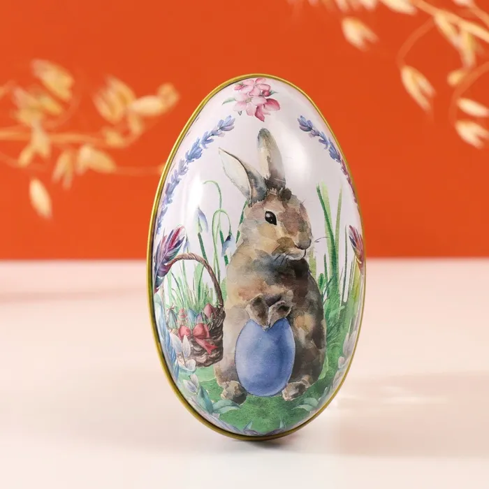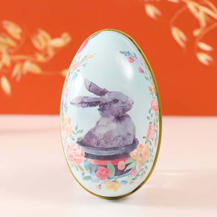 Металлическая шкатулка-яйцо «Пасхальный зайка в горшке», для украшений, хранения мелочи, 7×6.5×11 см